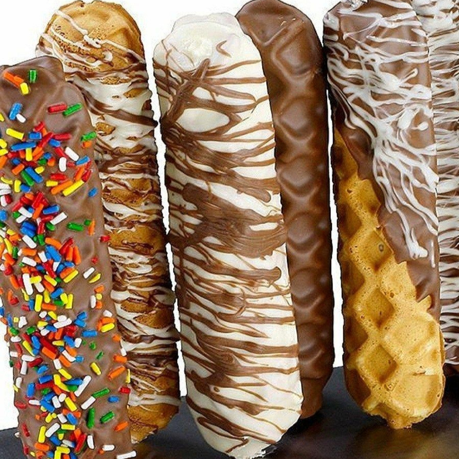 2 Barras de waffle estilo Holy Waffle, inspirada en recetas de la Ciudad de México. Crujiente, envuelta en Nutella y cubierta con trío de chocolate en granillo. Un postre diferente, auténtico y único en La Paz.