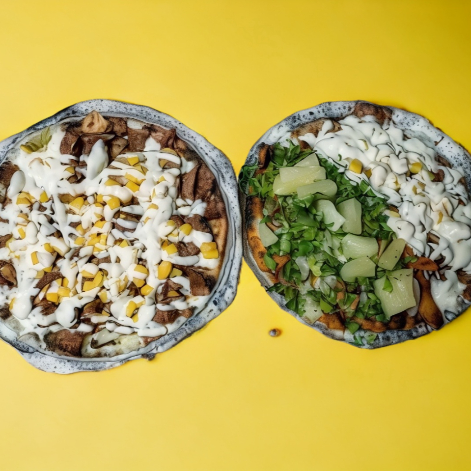 Charola 7 in con puré de papa, queso, carne al pastor, tocino, cebolla, cilantro, piña (TROZOS O ENTERA, DEPENDE EXISTENCIA), crema chipotle si señor y cereza. Incluye salsa mexicana (cebolla, tomate y chile), salsa licuada, guacamole, pepino, repollo, tortillas de harina y tortillas de maíz.