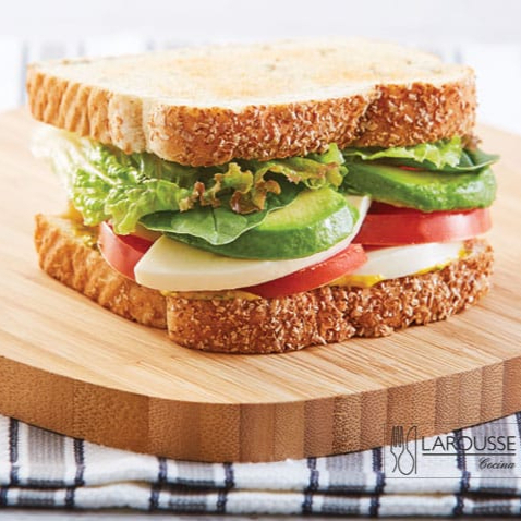 jamón de pavo, queso americano, lechuga, tomate, aguacate.