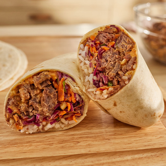 Burrito en tortilla de harina con tu guiso favorito a elegir, incluye frijol y arroz.