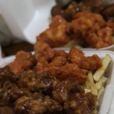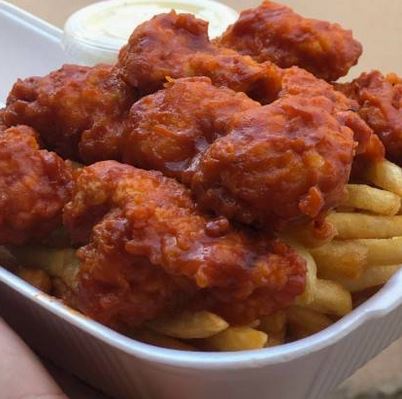 Base de papas a la francesa bañadas con aderezo ranch y boneless con la salsa de tu elección.