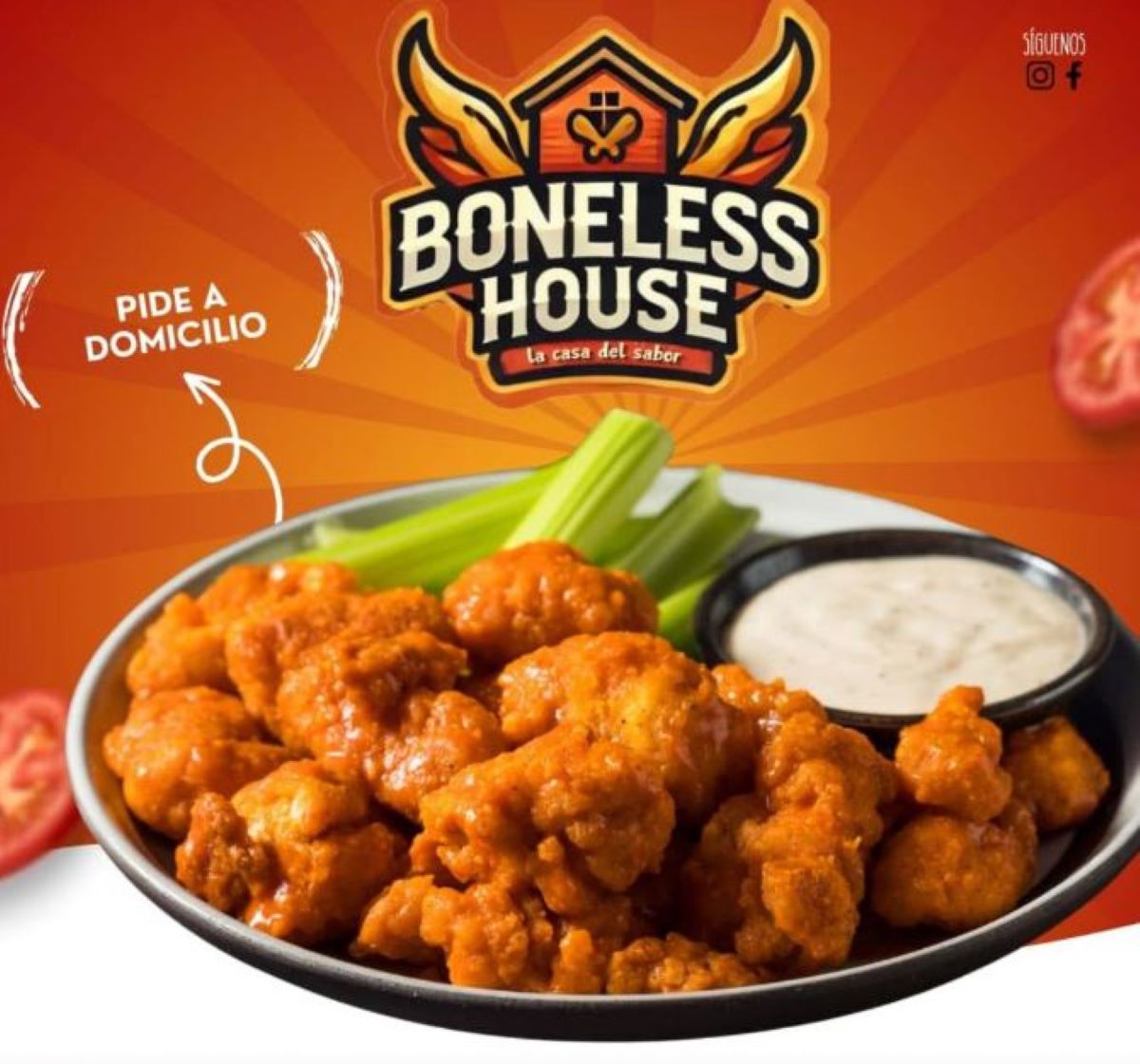 1 kg De boneless o 24 alitas con tus salsas favoritas, papas grandes, 3 dedos de queso, aderezo y verduras.