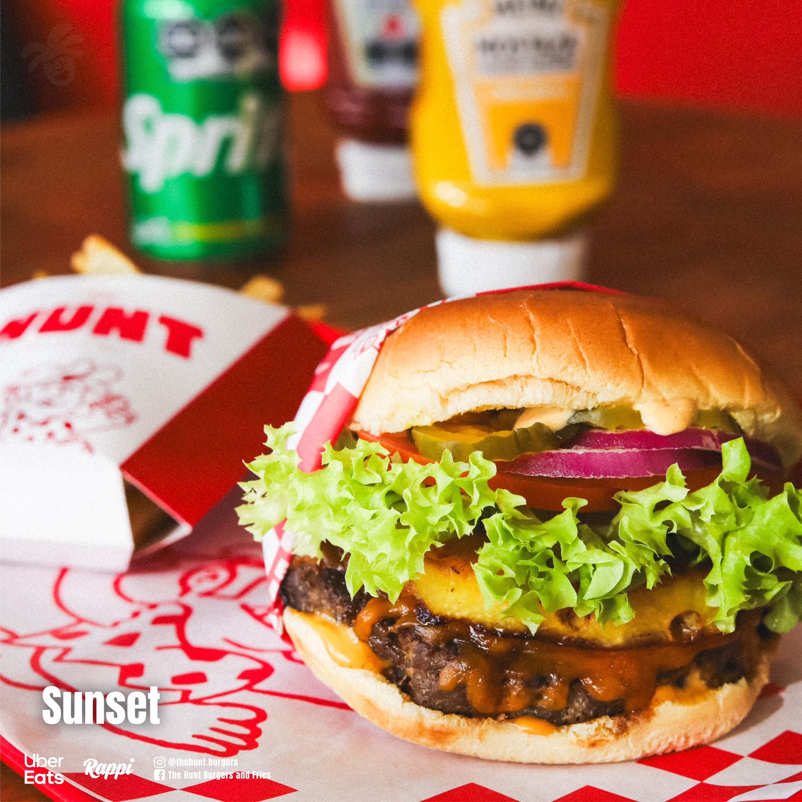 150g de carne de res 100% sirloin, auténtico queso cheddar, lechuga, piña, tomate, cebolla, pepinillos y aderezo de la casa. ¡Incluye papas a la francesa!.