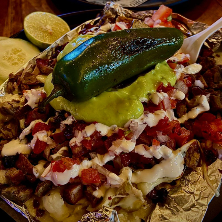 Media orden de carne asada (aprox 5 tacos), incluye salsas, guacamole y cubiertos