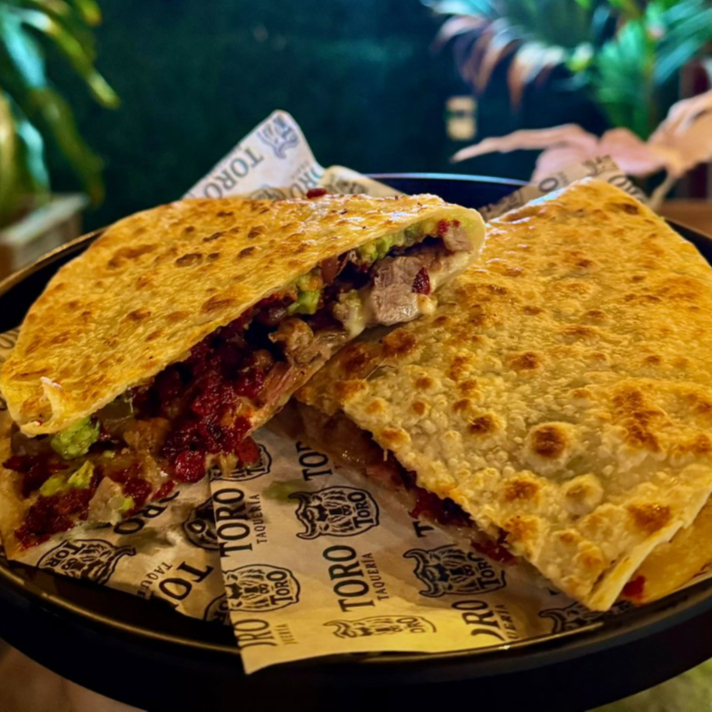 Tortilla de harina grande, con frijol, chorizo, queso y guacamole