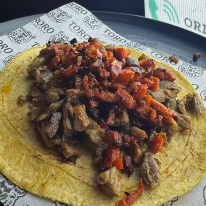 Taco en tortilla de maíz o harina, de asada y chistorra