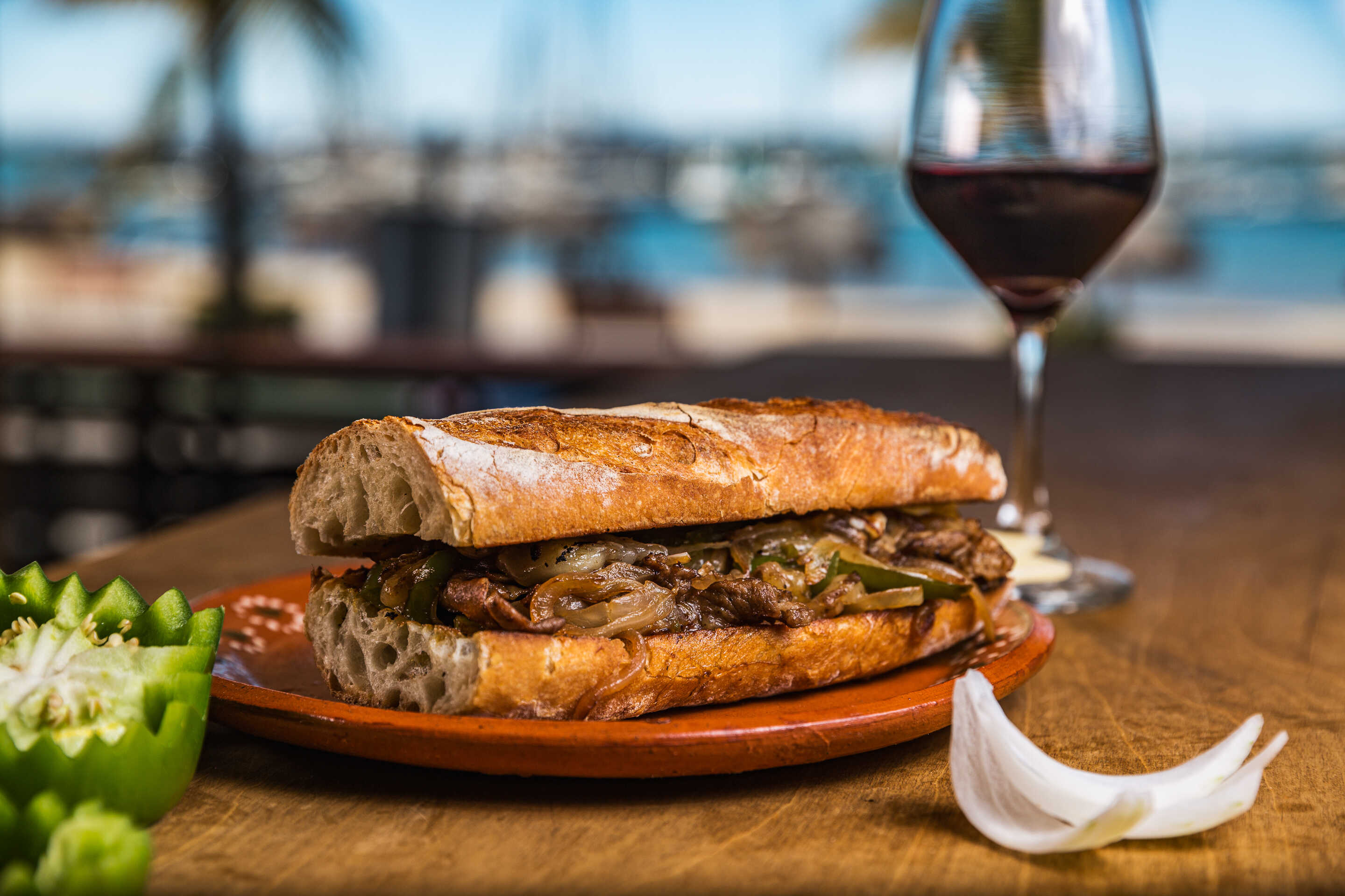Ribeye, cebolla y pimiento gratinado con queso provolone ahumado.