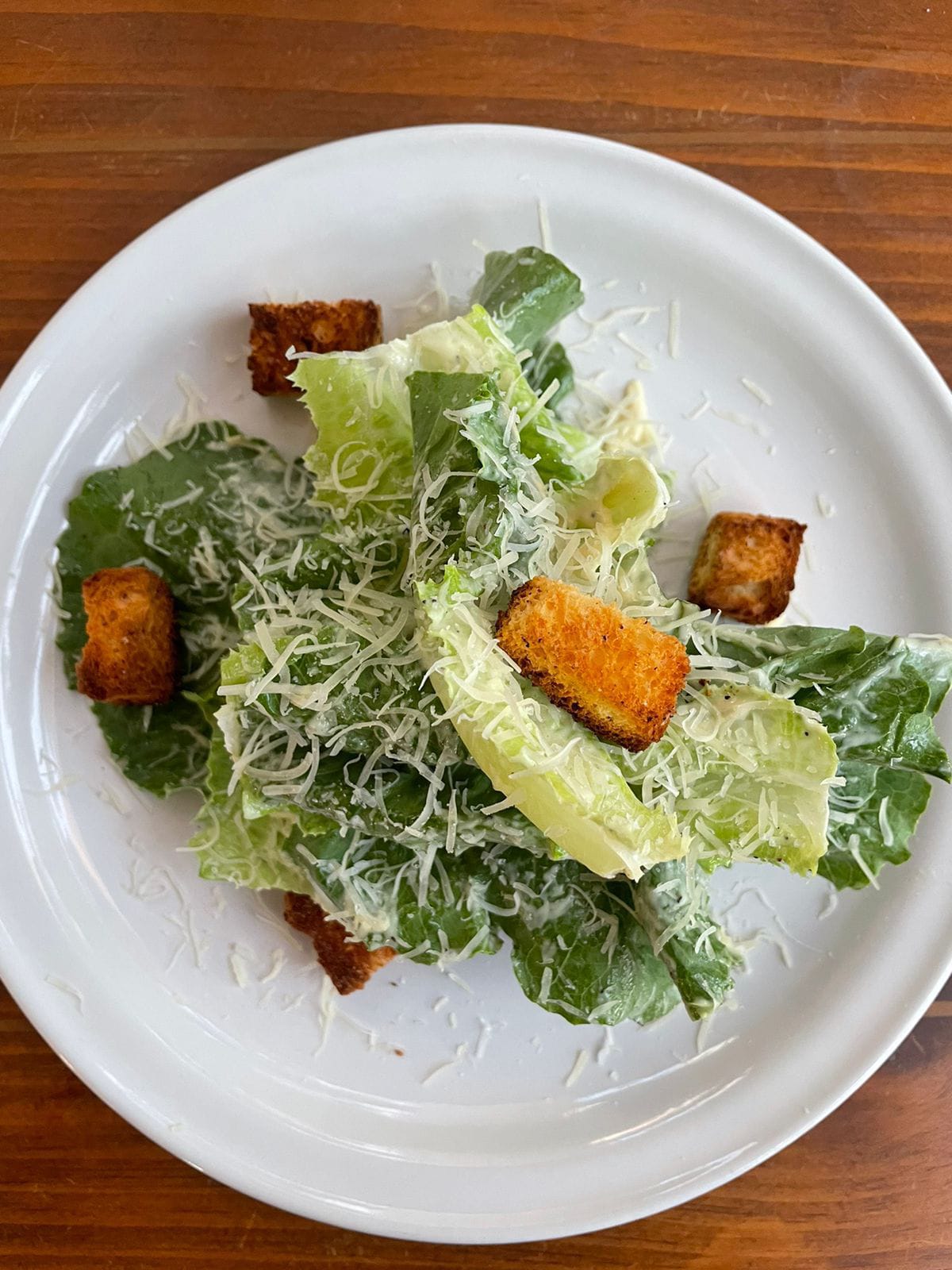 Clásica ensalada César con aderezo de anchoas, queso parmesano y crotones.