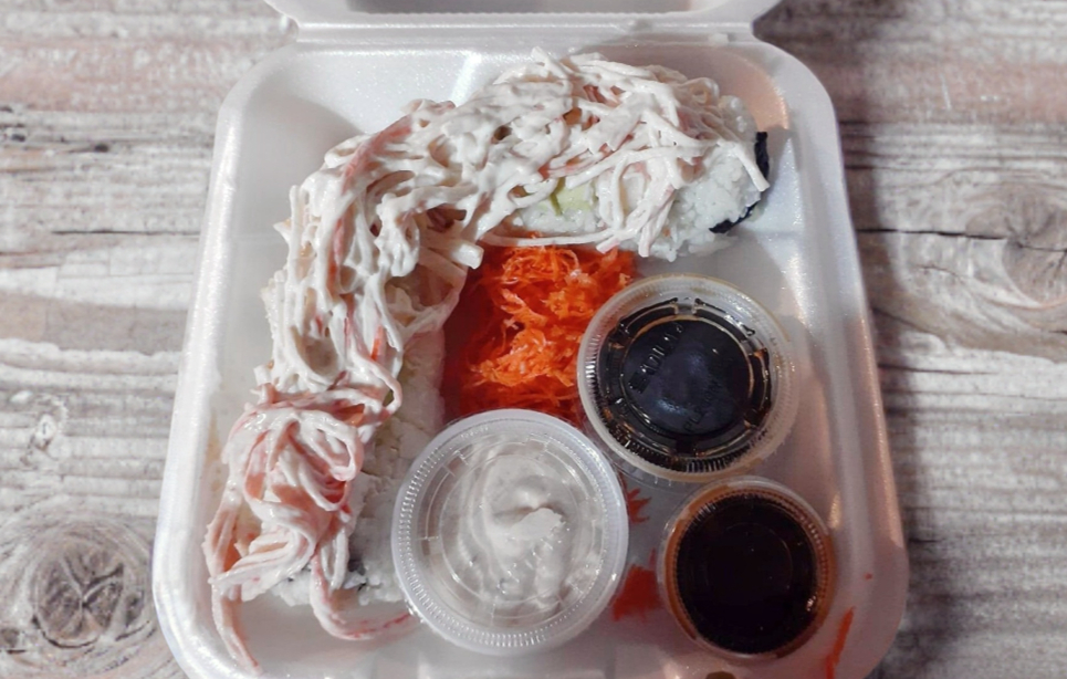 Adentro (res, camarón, aguacate). Afuera (cangrejo, queso crema, queso manchego). 360 g.
