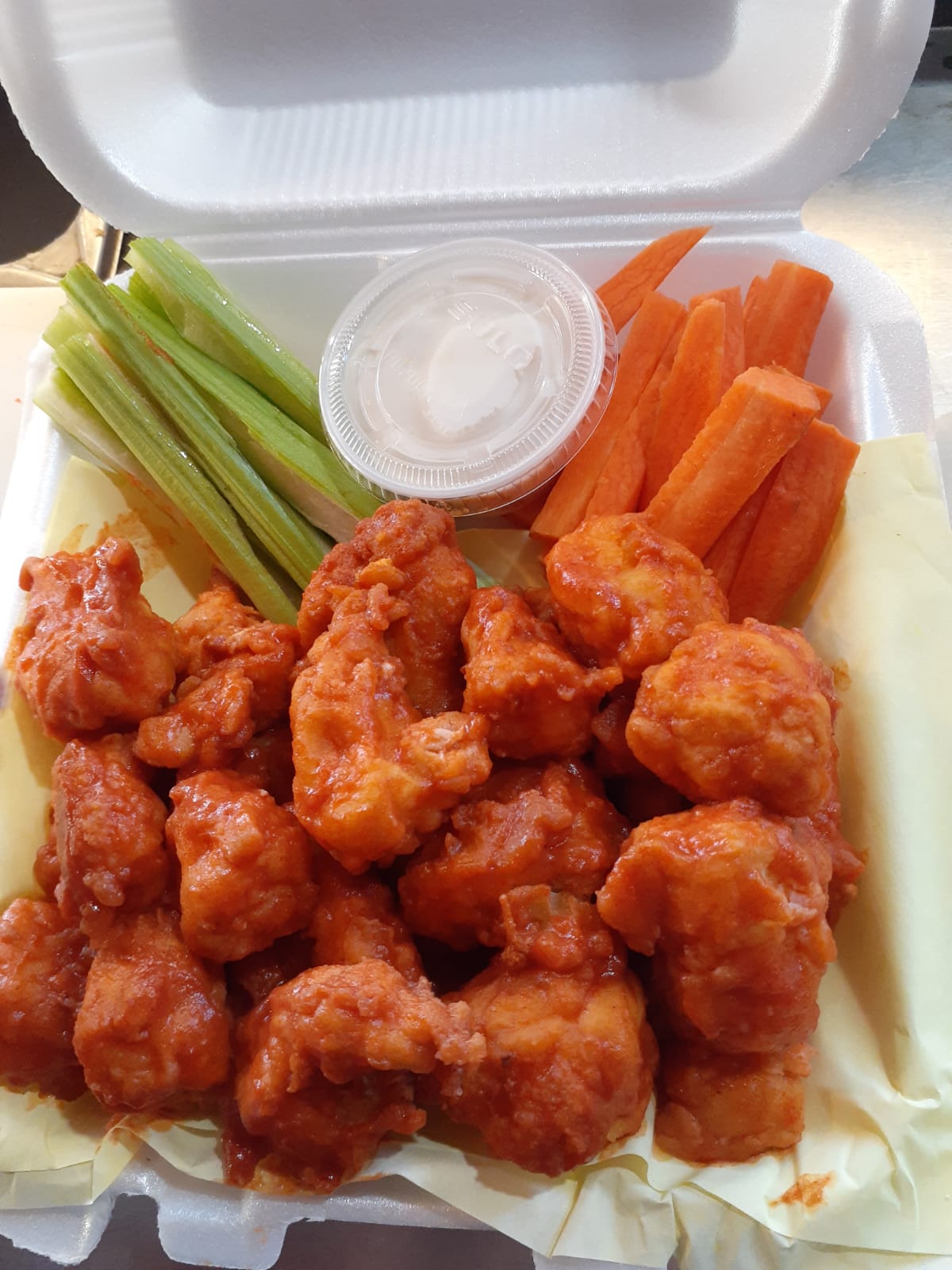 Boneless Bañados En Buffalo aderezo ranch, zanahoria,pepino