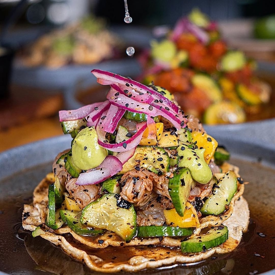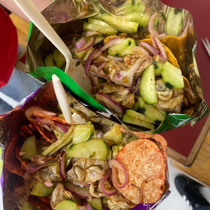 Tostitos preparados con rico aguachile de tu seleccion, acompañado de aguacate, cebolla, pepino y chiltepin