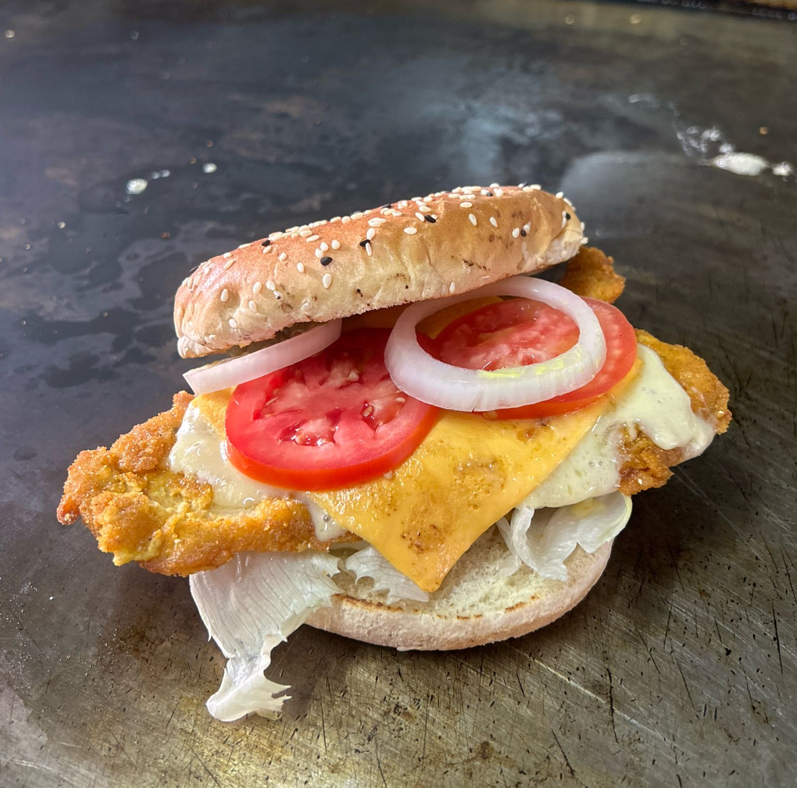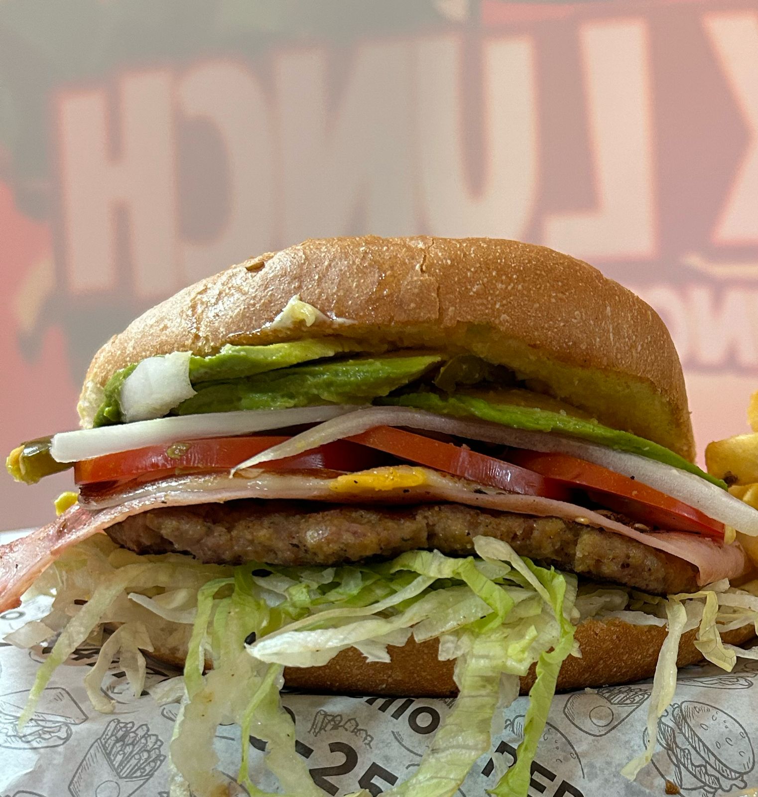 Sincronizada con jamón, amarillo y asadero de hamburguesa.