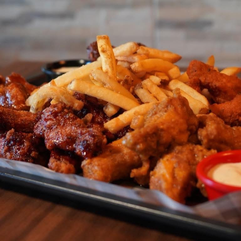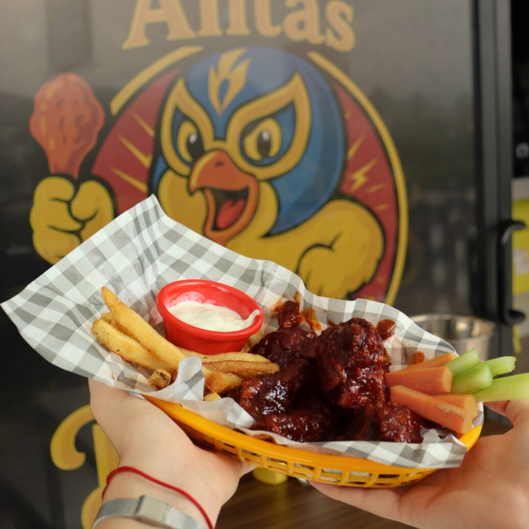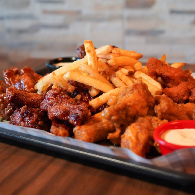 INCLUYE 12 ALITAS, 250 GRAMOS DE BONELESS, 6 AROS DE CEBOLLA, 5 DEDOS DE QUESO, 300 GRAMOS DE PAPAS Y 3 ADEREZOS