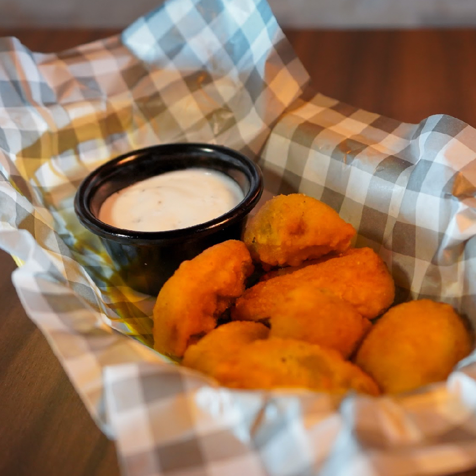 Orden de 7 piezas de jalapeños empanizados rellenos de queso crema, acompañados de vegetales y aderezo RANCH.