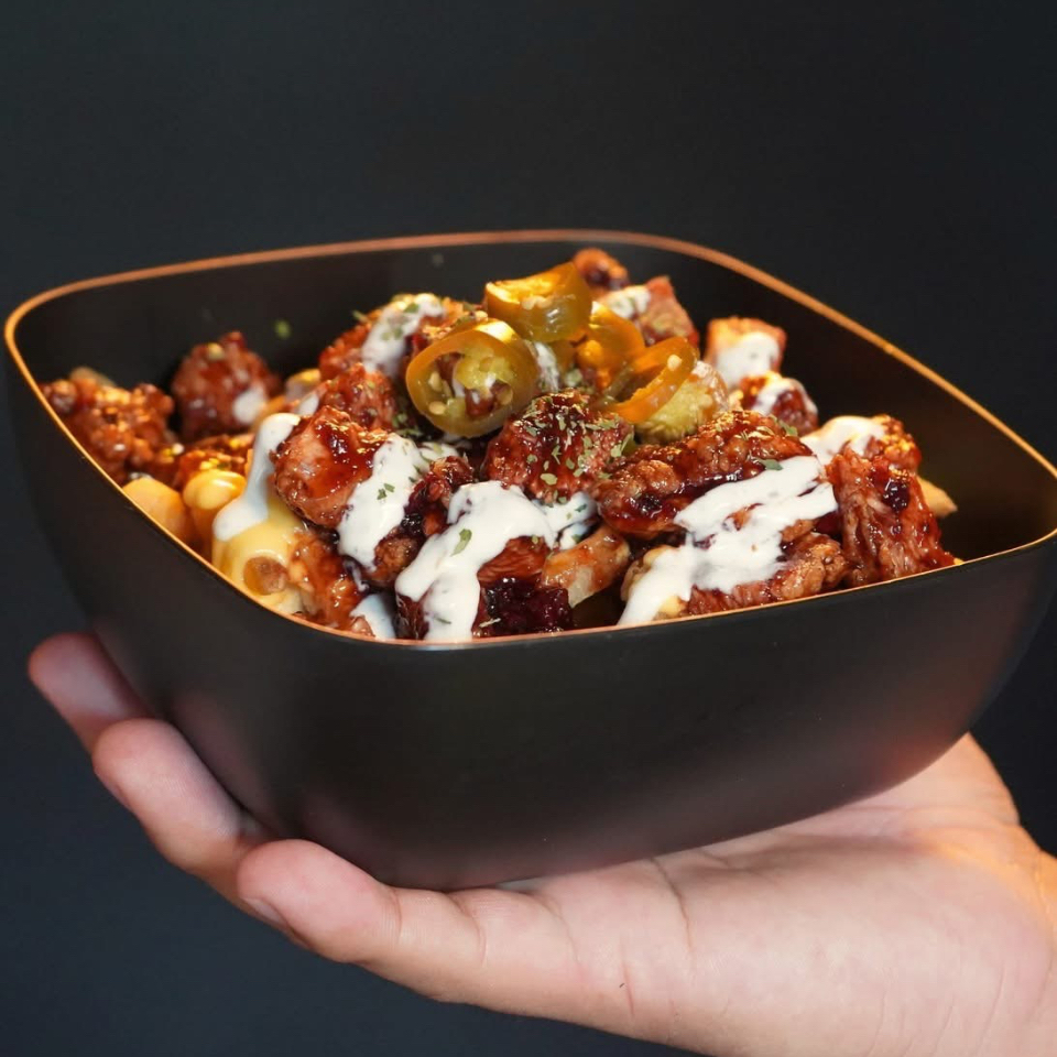 300 Gramos de papas a la francesa acompañadas de 120 gramos de BONELESS, bañados en la salsa de tu elección. Aderezadas con queso CHEDDAR y RANCH