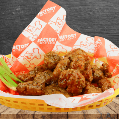 Los auténticos boneless bañadas en la salsa de tú elección con deliciosas guarniciones de zanahoria y apio..