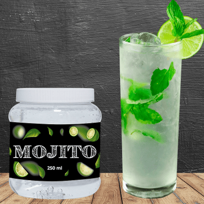 Un cóctel refrescante de ron, hierbabuena fresca y un toque de azúcar. sabores mentolados y dulces, con pet reutilizable!