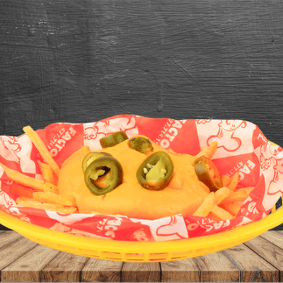 Papas fritas bañadas con queso cheddar y jalapeño.
