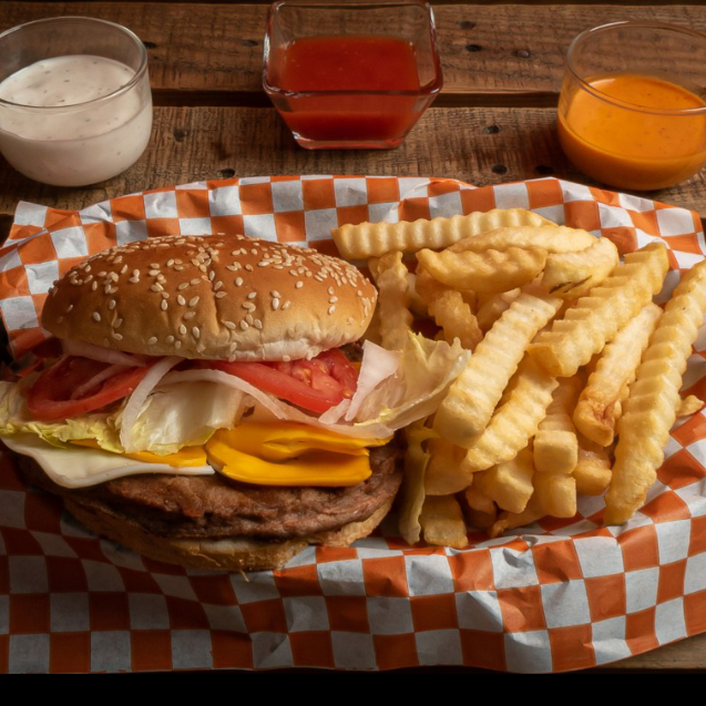 Hamburguesa de res con papas