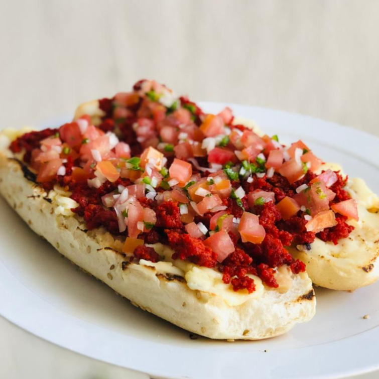 Rellenas de queso fresco, bañadas en salsa de frijol y chorizo. orden de 5 piezas