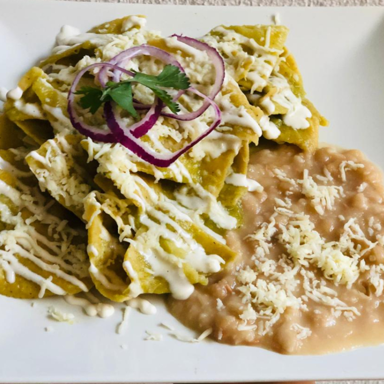 Acompañados de frijol y bolillo. Con crema y queso