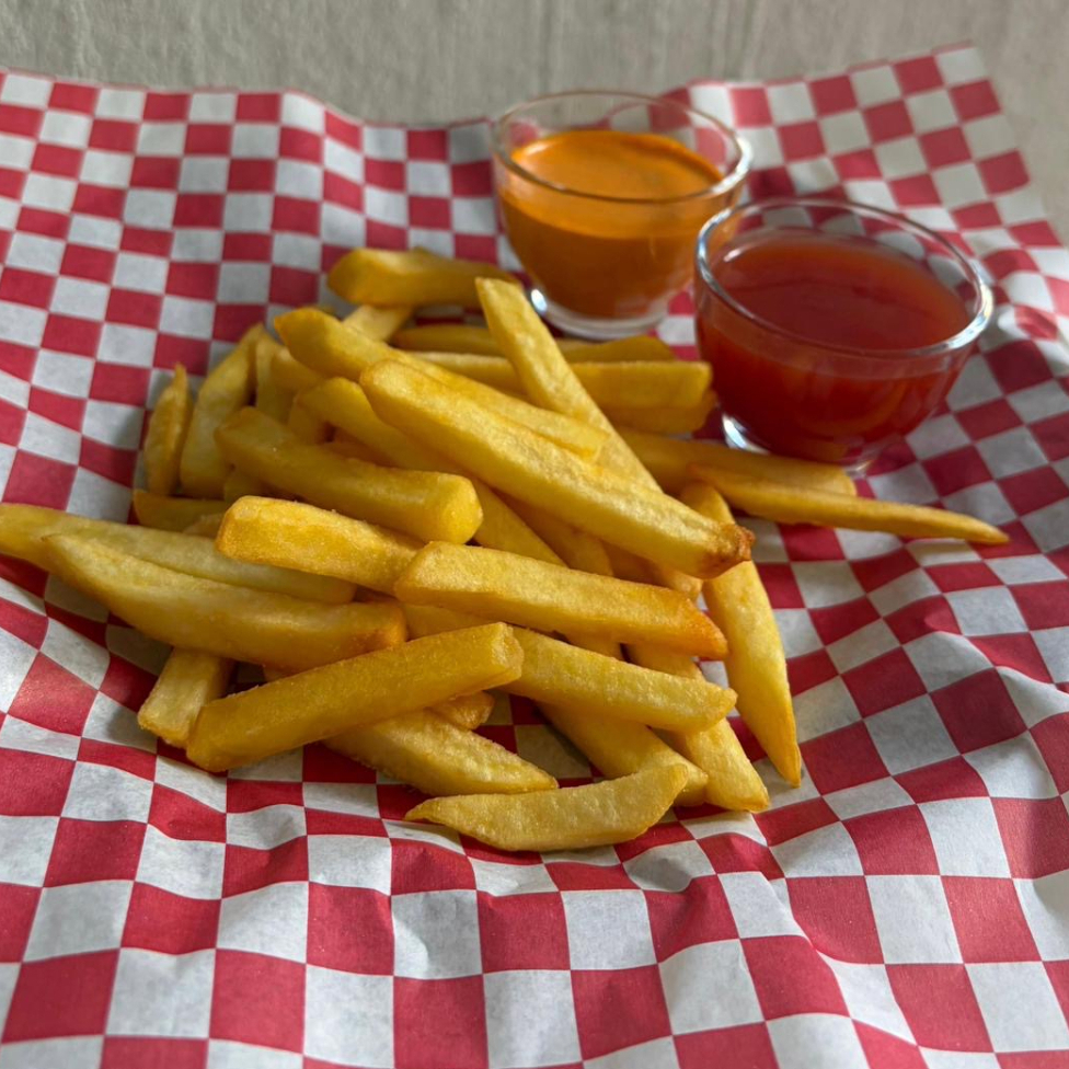 Papas a la francesa. Acompañadas de salsa chimichurri y cátsup.