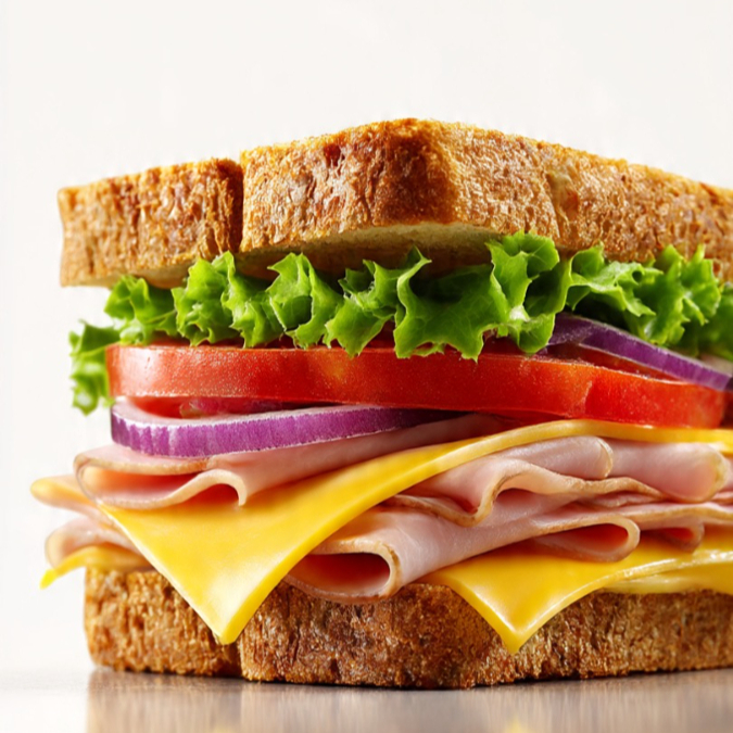 Combo de Sandwich de Jamón de pavo, con lechuga, jitomate, cebolla y queso amarillo. + Complemento a elegir.