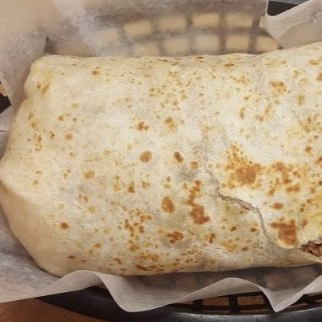 Burrito en tortilla gigante, con pollo a la plancha, queso panela, lechuga, jitomate, cebolla, aderezo chipotle y aguacate