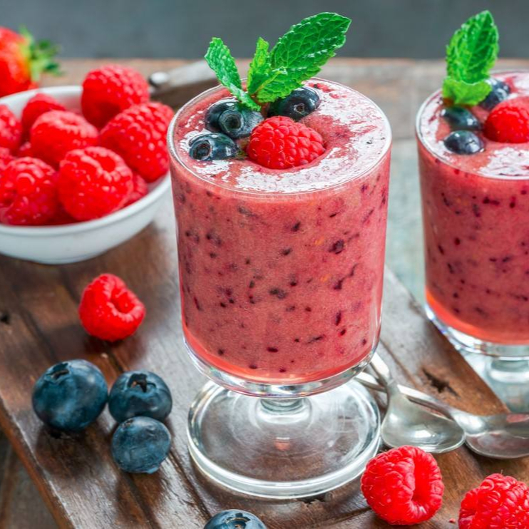 Batido de Leche con Fresas, arándanos y frambuesas, Avena y Granola.