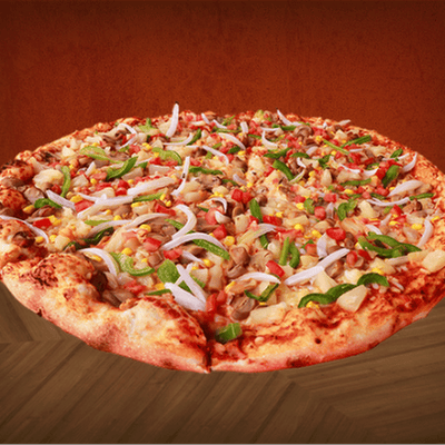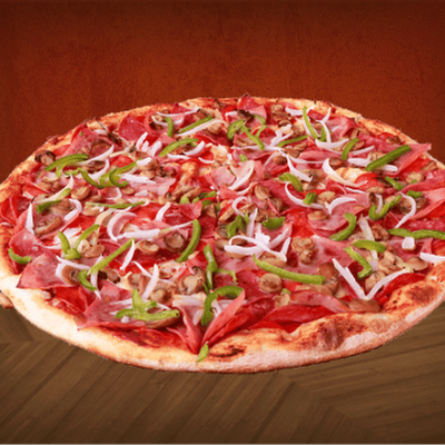 Una mezcla irresistible de jamón, morrón, cebolla, champiñones, salami y pepperoni. perfecta para un festín de sabores en cada bocado.