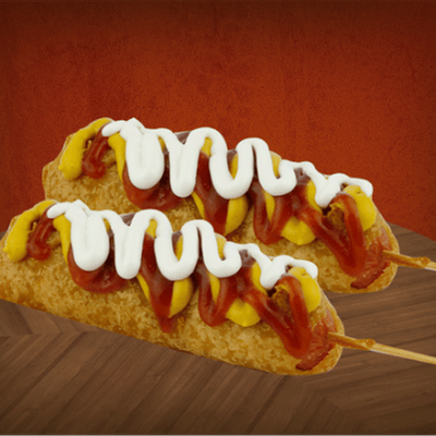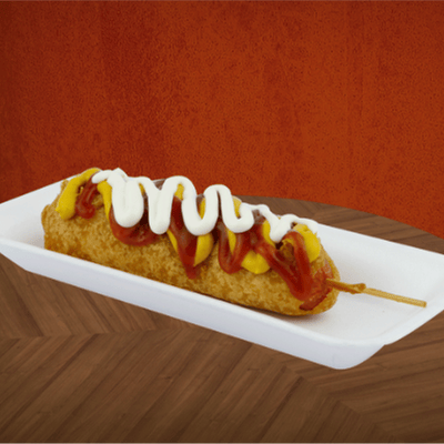 Banderilla de salchicha, doradita y crujiente..