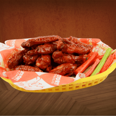 Las auténticas alitas bañadas en la salsa de tú elección con deliciosas guarniciones de zanahoria y apio.