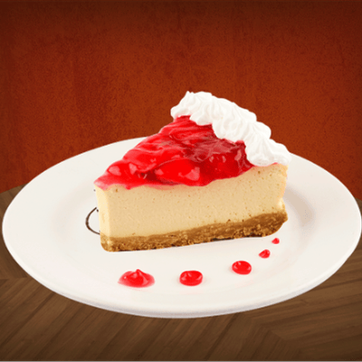 Porción de pay de queso con fresas.