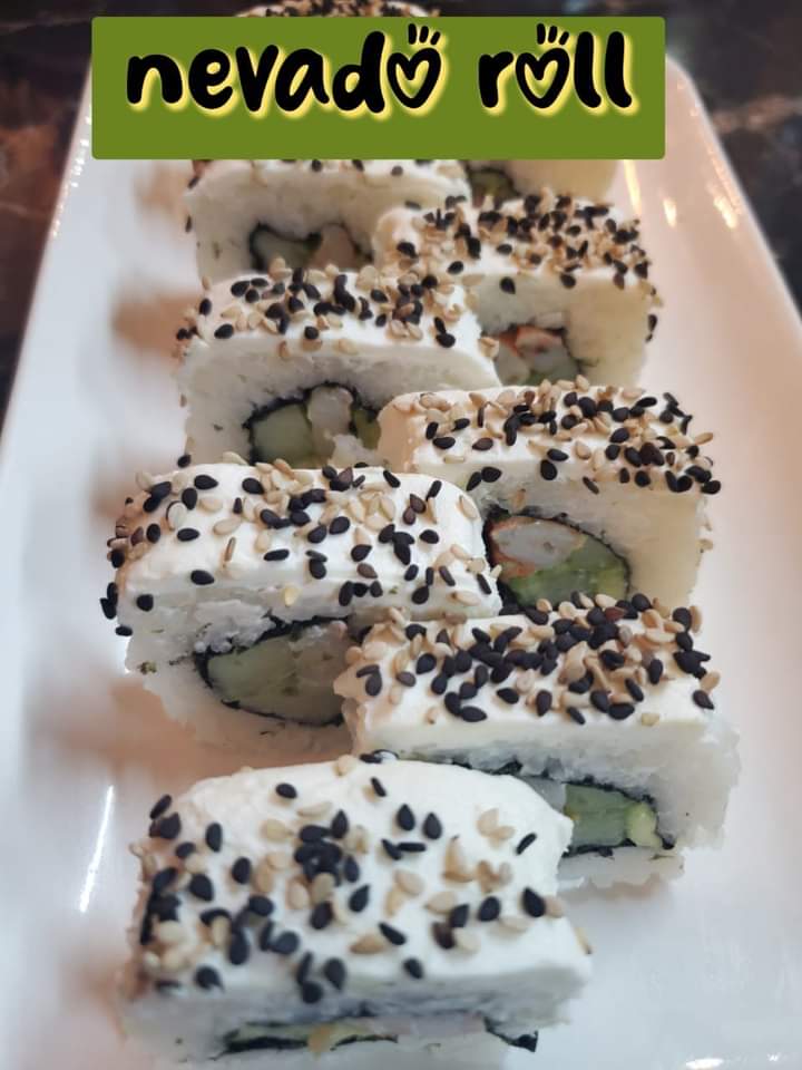 1 Rollo california, 1 rollo cama suri, 1 rollo nevado, 1 rollo maki sushi