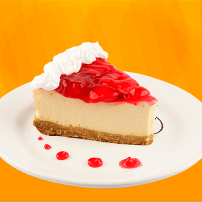 Cheesecake cremoso con base de galleta y suave glase de durazno.