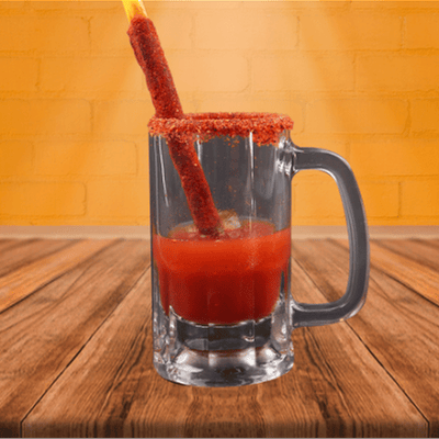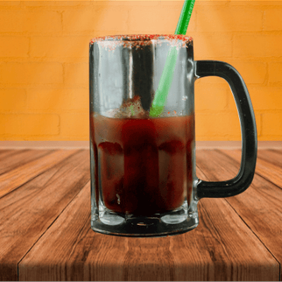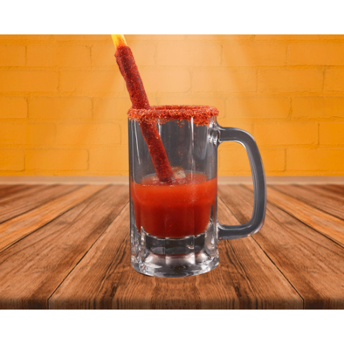 Preparado con sal, pepino, jugo de limon, chamoy en polvo y clamato. no incluye tarro y cerveza.