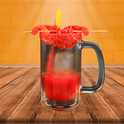 Preparado con sal, chamoy factory, jugo de limon, chamoy en polvo y liquido, gomitas de lombriz y popote con tamarindo. no incluye tarro y cerveza.