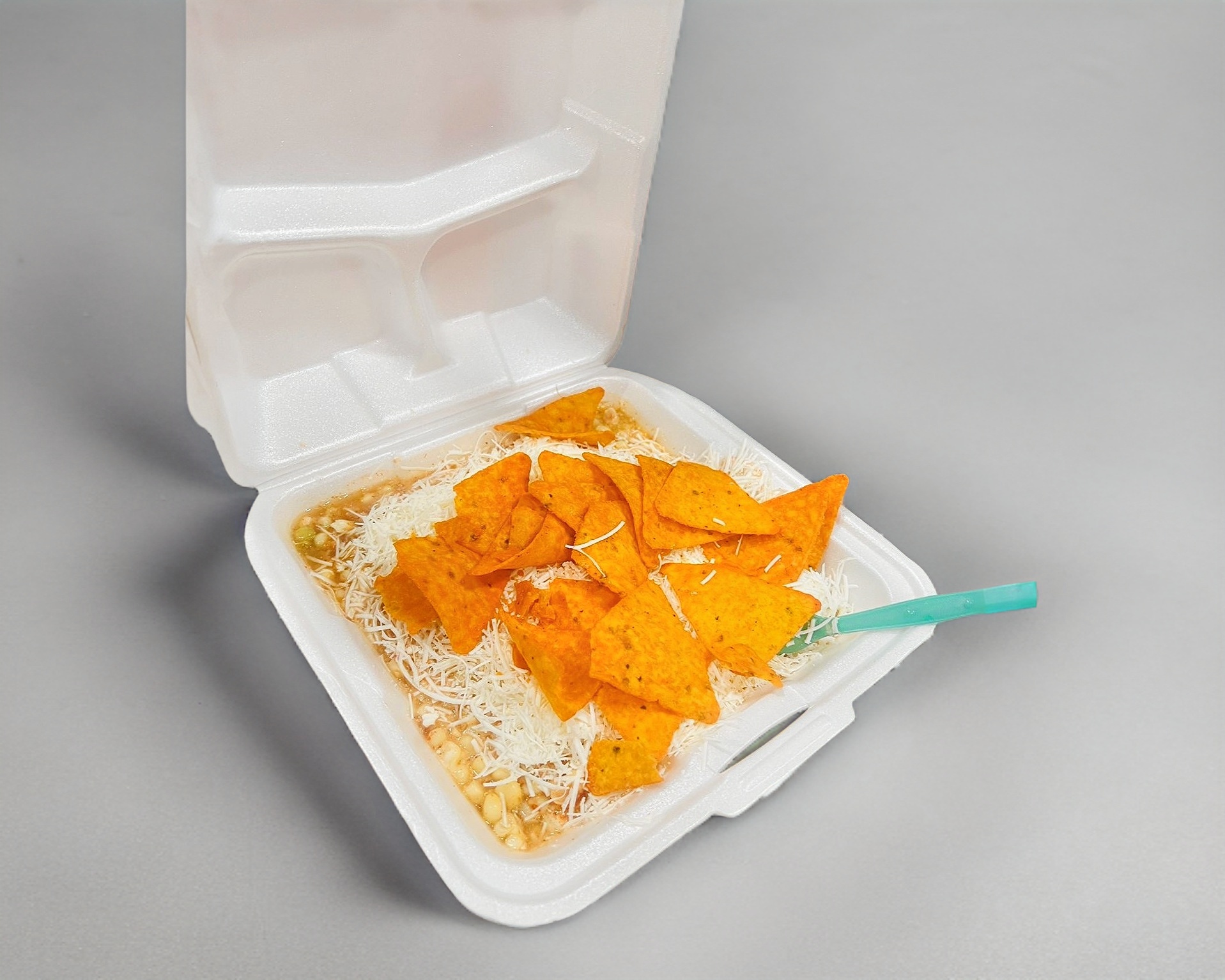 Elote de grano y maruchan, preparado