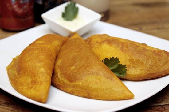 Carne o pollo apanado, cebolla grille, tocino, jamón, ripio de papa, salsas, queso gratinado.