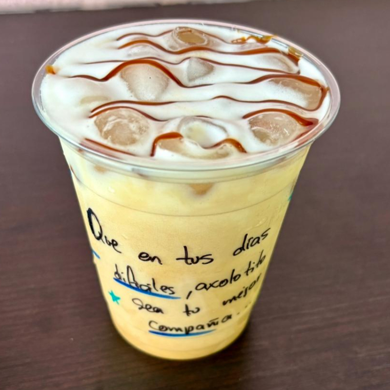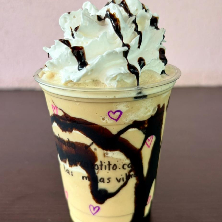 Deliciosa bebida de chocolate blanco con toque de caramelo.