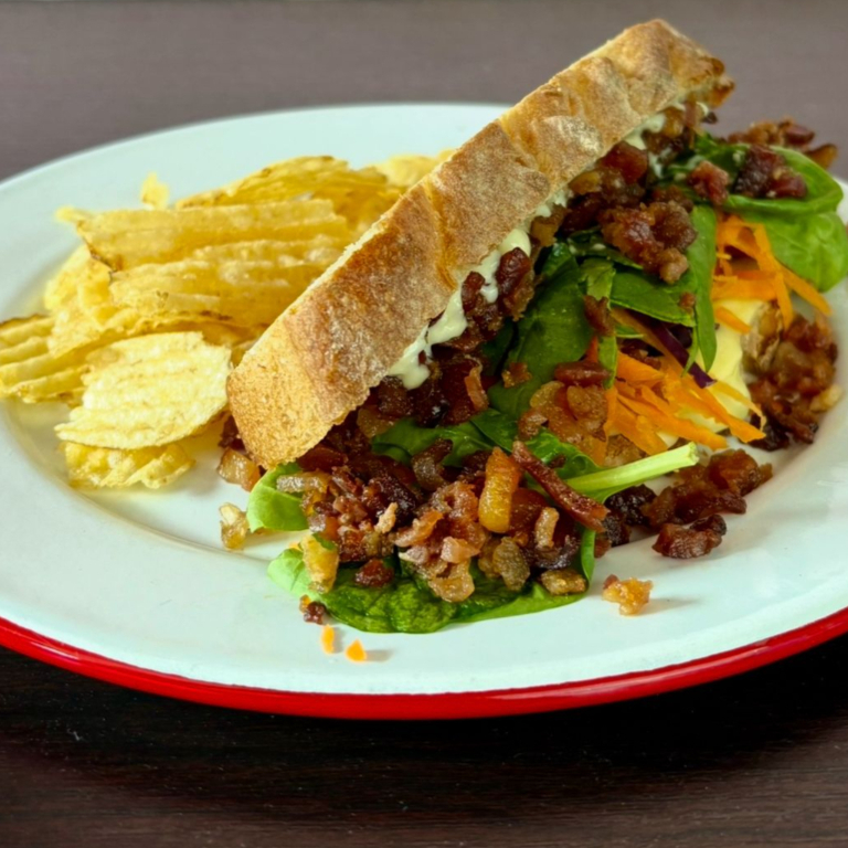 Con espinaca, jitomate, cebolla morada y queso Gouda, delicioso sándwich con la receta de la casa.