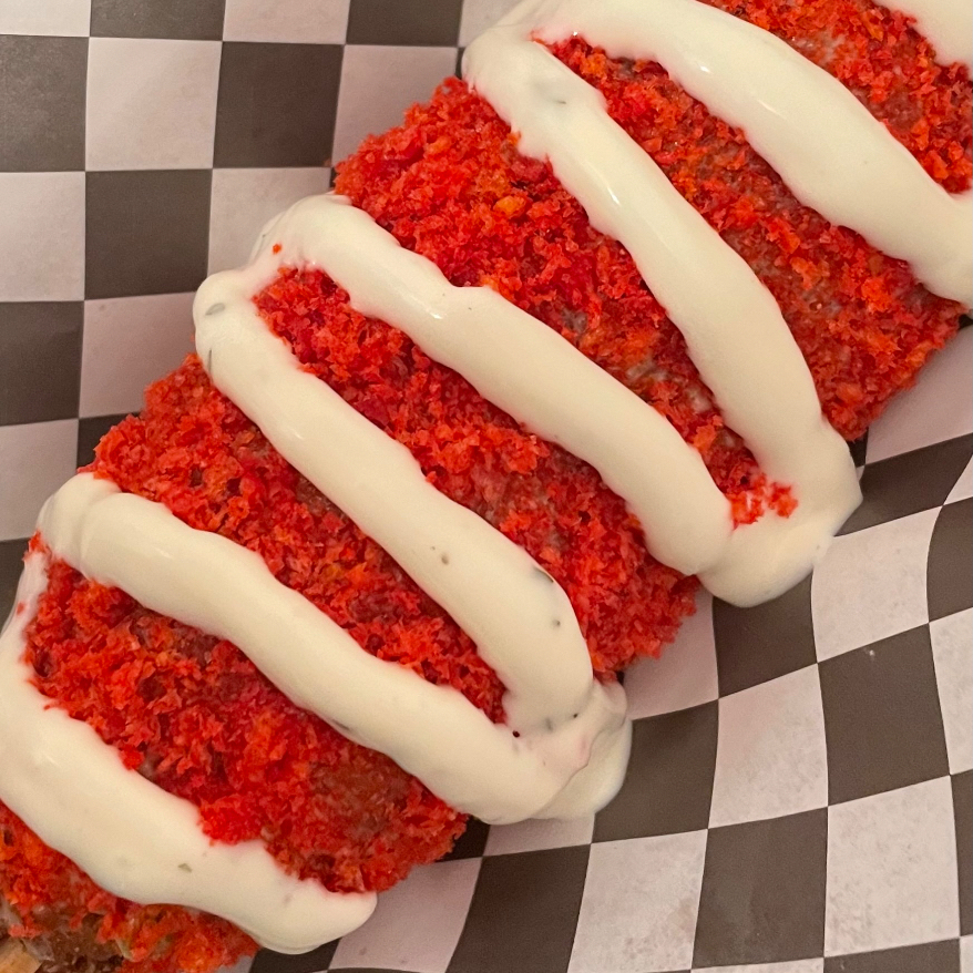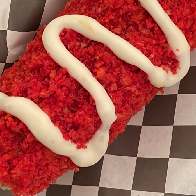 “Crujiente banderilla con una base de queso fundido, doradita y lista para derretirse en tu boca. ¡Para los amantes del queso en su máxima expresión!”