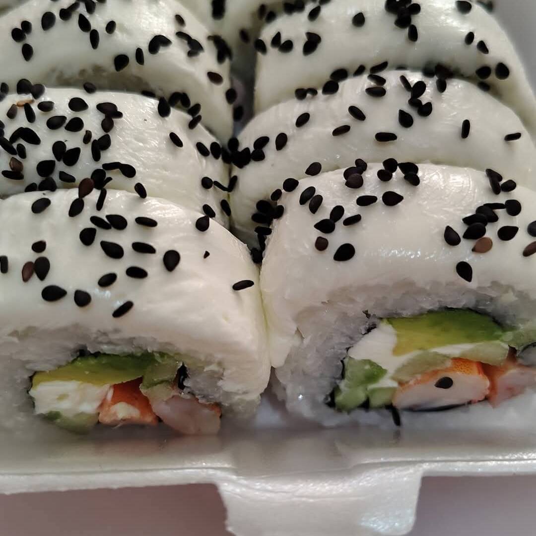 Envuelto en semilla de sesamo, relleno tampico, aguacate y phidadelfia