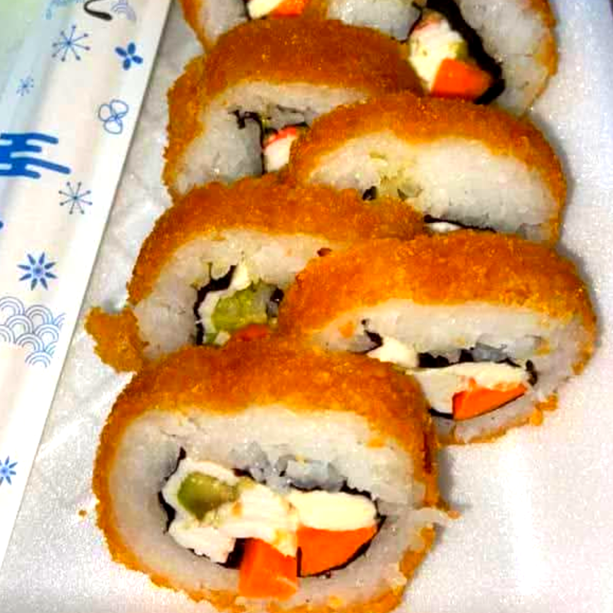 Envuelto en panko y nori, Relleno: Queso crema, camaron tempura y Queso chihuaha