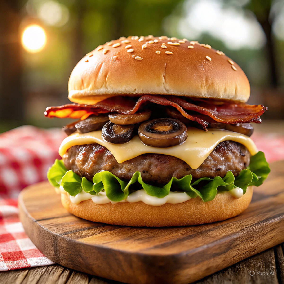 Champiñones, tocino,queso americano,BBQ.lechuga , aderezos