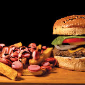 Carne de res, queso amarillo,salchicha, tocino,papas ala francesa