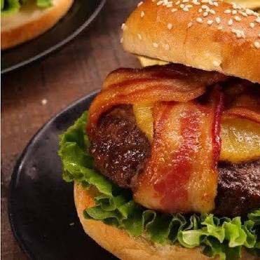 TOCINO,CARNE DE RES, QUESO AMERICANO, LECHUGA, ADEREZOS