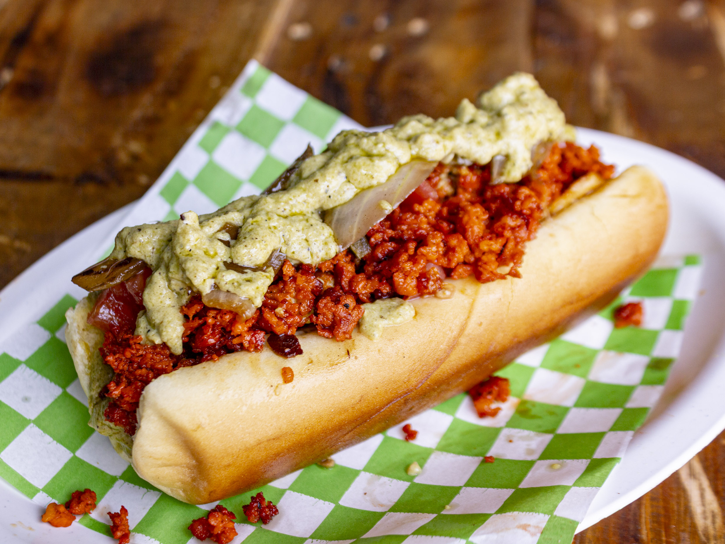 Salchicha, queso asadero, chorizo, aderezo jalapeño y verdura.