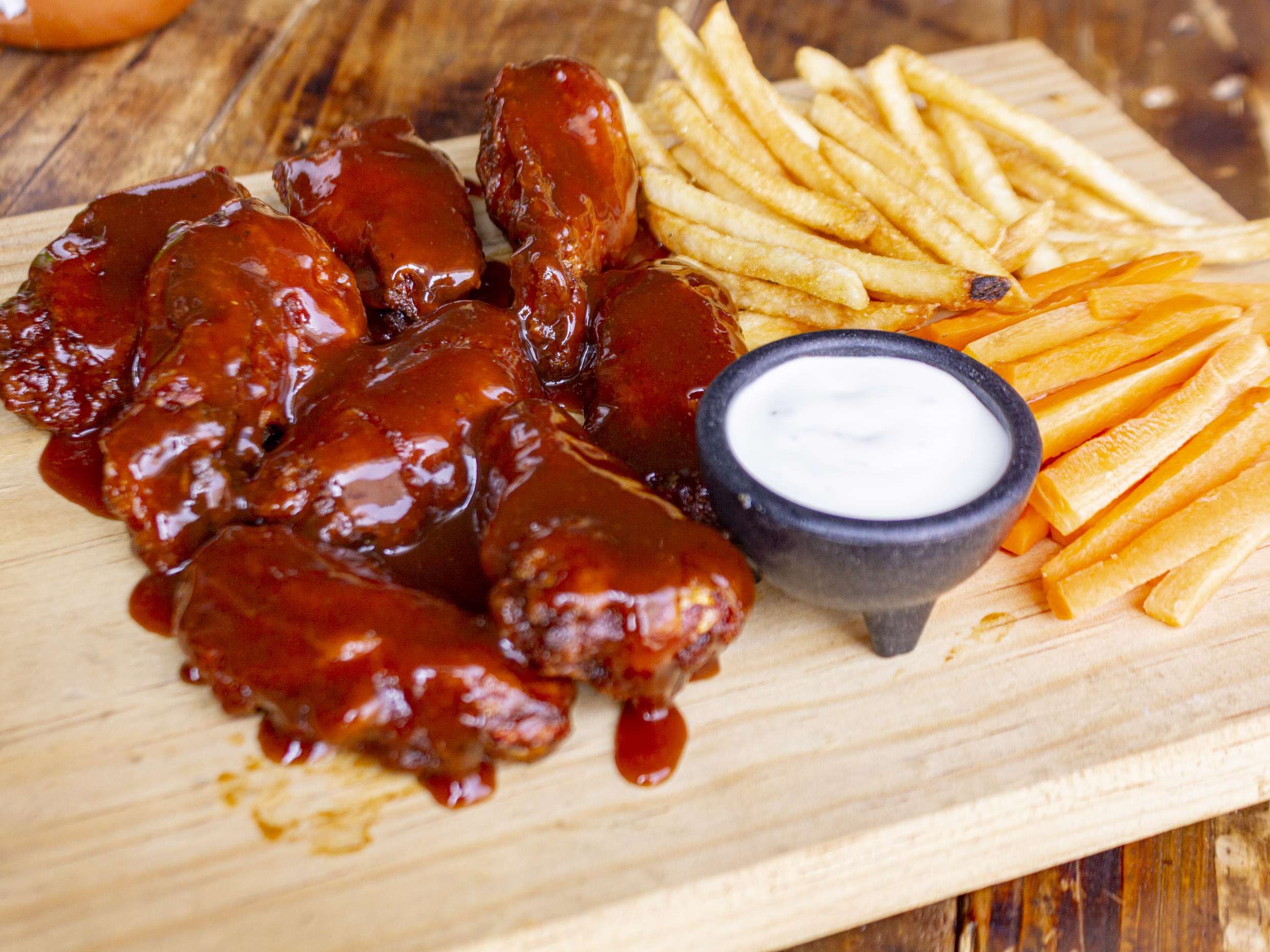 3 boneless (salsa a elegir), queso asadero y aderezo ranch.