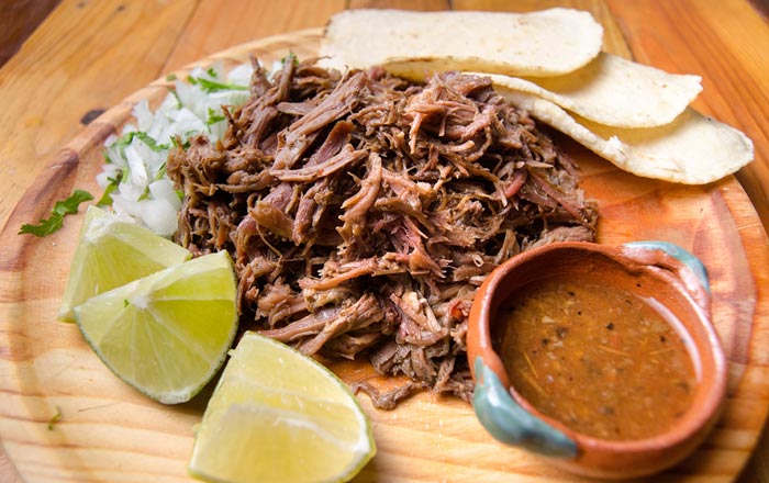 Carne de pierna, costilla y montalayo. Acompañado de tortillas y salsas